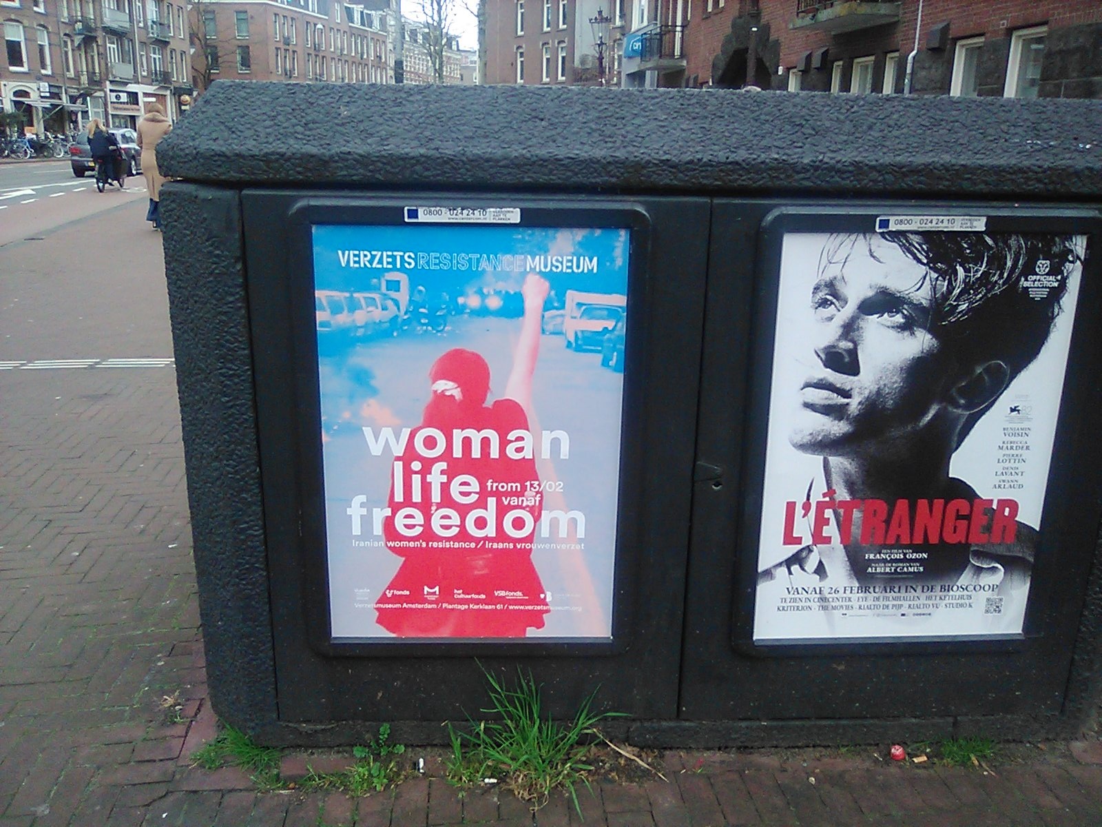 Exposition in Resistance Museum Amsterdam on Iranian women’s resistance. Photo shows publicity poster, streetview Amsterdam March 12, 2026. Info on the exposition: Verzetsmuseum Amsterdam ( in English ).