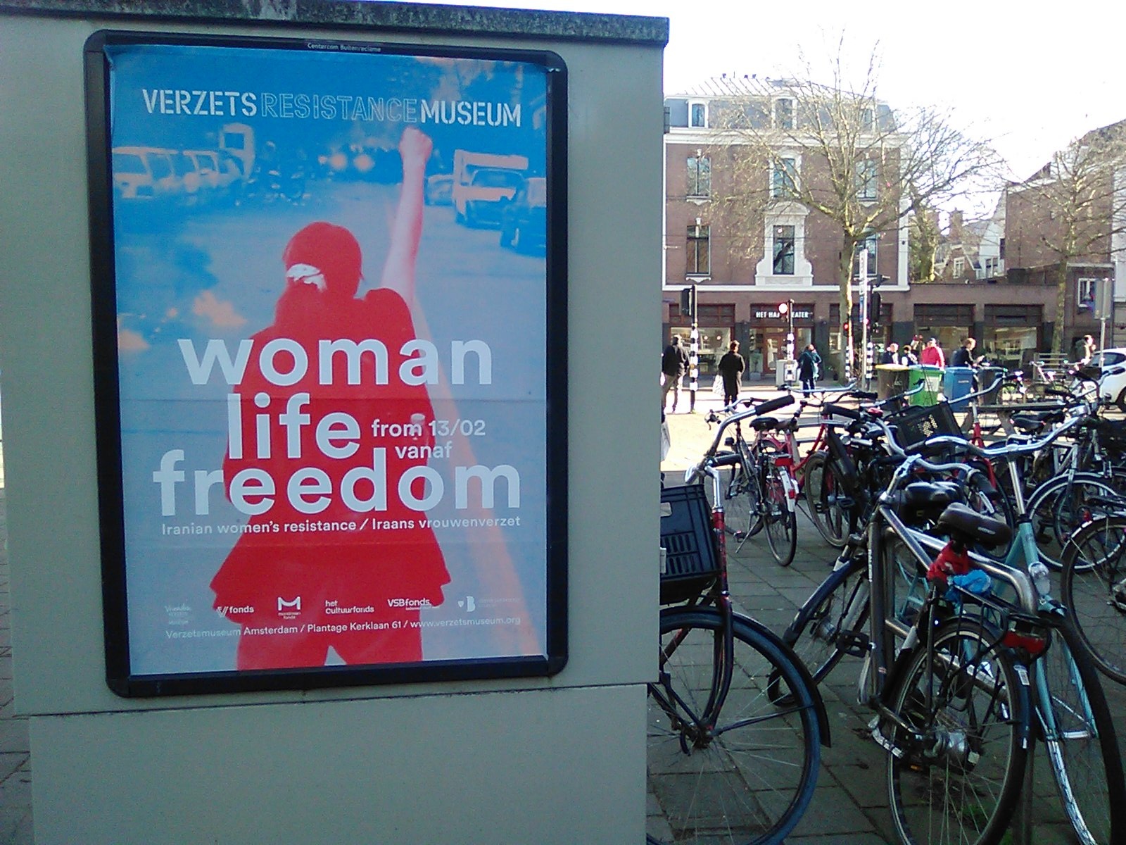 Publicity poster Resistance Museum Amsterdam , streetview Amsterdam March 26, 2026.